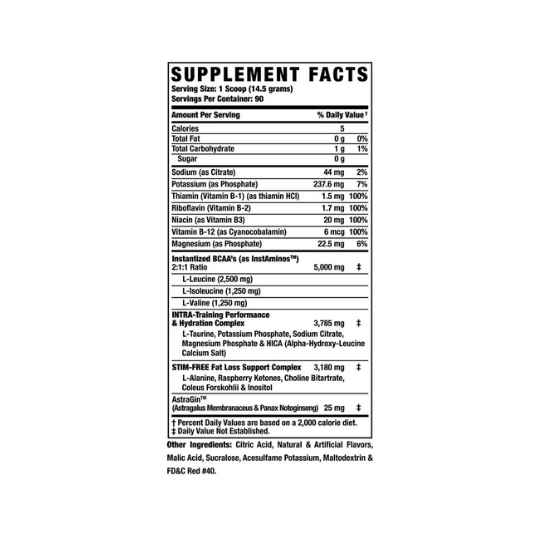 Es un suplemento avanzado diseñado para apoyar tus entrenamientos más exigentes y acelerar la recuperación muscular. Su fórmula combina aminoácidos esenciales (EAAs y BCAAs), electrolitos y estimulantes naturales para ofrecerte un impulso completo durante y después del ejercicio.