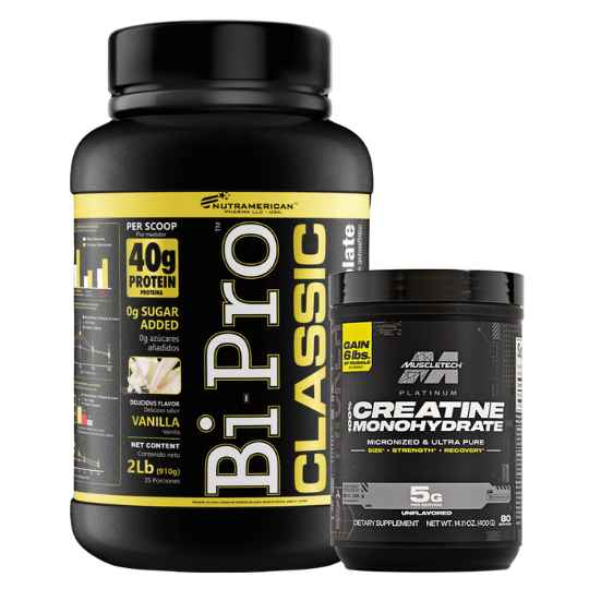 La combinación de ambos productos crea una sinergia ideal: mientras Bipro Classic aporta los bloques de construcción necesarios para el desarrollo muscular, Creatina Platinum mejora el desempeño y acelera la recuperación entre sesiones, permitiéndote entrenar más duro y con mejores resultados.