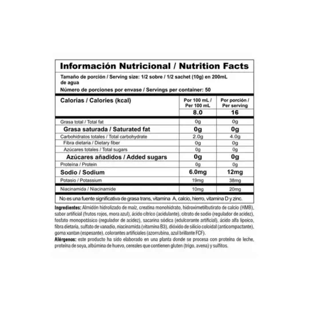 Es un suplemento avanzado de creatina formulado para quienes buscan alcanzar un nivel superior de fuerza, resistencia y desarrollo muscular. Su fórmula combina creatina monohidratada de alta pureza con compuestos potenciadores que mejoran su biodisponibilidad, facilitando una absorción más rápida y efectiva.