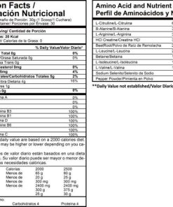 Además, su contenido de creatina HCL ayuda a la resíntesis energética y acelera la recuperación muscular, mientras que la leucina estimula la síntesis de proteínas, favoreciendo el crecimiento y mantenimiento de la masa muscular. La betaína y la beta-alanina actúan en conjunto para regular la acidez muscular, optimizando el entorno anabólico y permitiendo un mejor desempeño durante sesiones intensas de ejercicio.