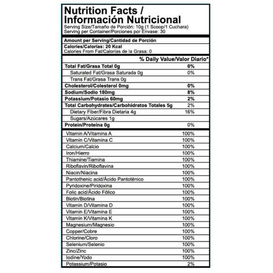 Ideal para quienes tienen una dieta limitada o para aquellos con alta actividad física, también incluye fibra para apoyar la salud intestinal y mejorar la digestión, lo que optimiza aún más la absorción de nutrientes.
